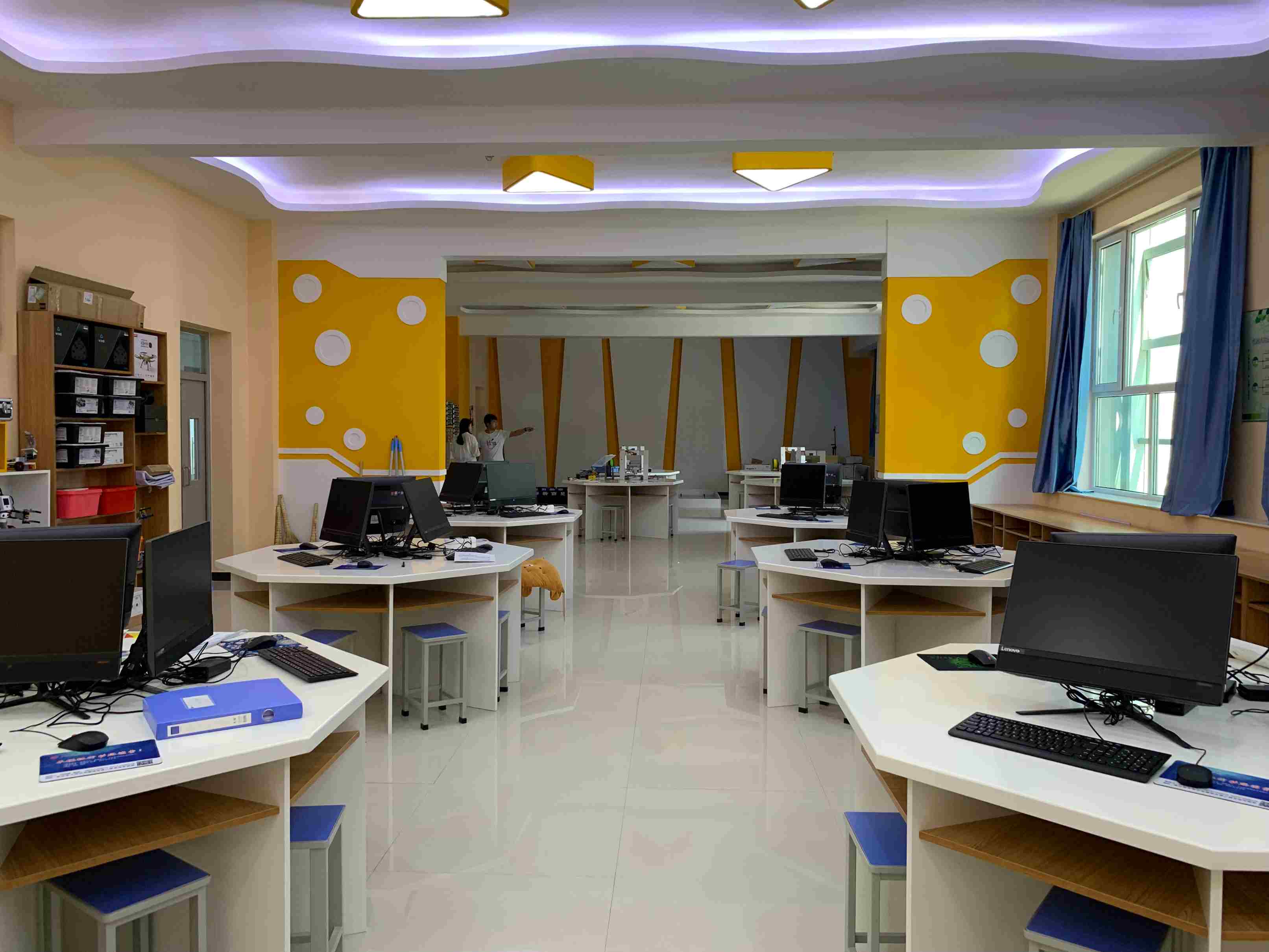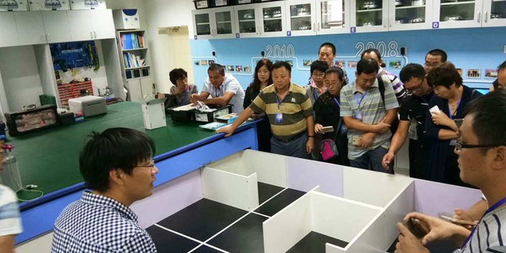阿斑兔將機器人、創(chuàng)客、3D打印、航模等融為一體,研發(fā)、設計具有情景體驗、創(chuàng)意生成、原型制作、展示交流等多功能為一體的機器人教育教學場所,即創(chuàng)新教育實驗室,針對不同年齡段學生的特點、學校學情等,為其提供足夠的空間、設備和完善的課程體系。